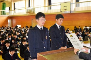 その後の集会では、中学生による2学期の反省と受験生による決意発表や生徒会からの連絡がありました。
