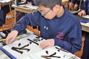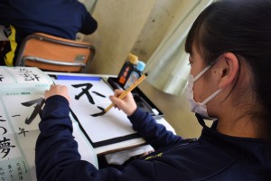 書初め大会 1年生 2019年02月15日 News1月26日(土)中学生を対象に、書初め大会が行われました。皆熱心に、取り組んでいました。今回は中学1年生の様子です。なおパソコン部が写真の編集をしてくれました。