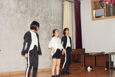 音楽に合わせ、全校生徒の前で、ダンスを披露しました。