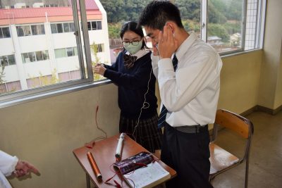 グランド横の広場で実験に成功し、イヤホンから小さい音ではありますが、ラジオ放送の声が聞こえたときには感動しました。