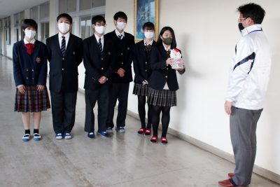 生徒会長が代表して渡します。 お願いしま~す。