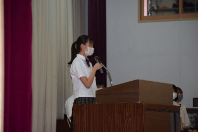 15名の各立候補の熱弁に全校生徒が真剣に耳を傾けていました。その時の様子を紹介します。