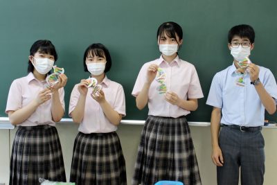 時間内に完成した生徒のみ、模型を持って写真撮影をしました。