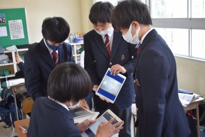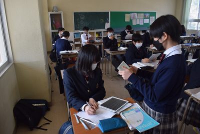 中2 英語 iPadを使った授業 2022年03月15日 News中学2年生の英語の授業紹介です。「20歳の自分にビデオメッセージを作ろう」という企画です。まだ構成の段階ですが、生徒達はいろいろと考えて、ビデオメッセージ作成に取り組んでいました。