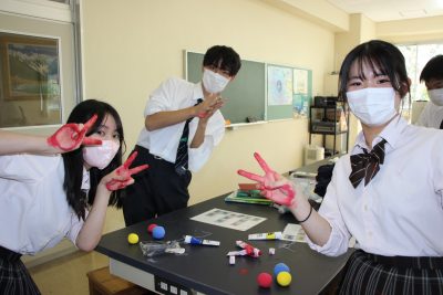 高等部5年生は「生殖と発生」について学び終えました。ウニ、カエル、ショウジョウバエなどの形態形成の仕組みを学びました。今回はカエルの原腸胚のモデルについて、紙粘土を使って作成し、立体的なイメージを身につける工作をしました。最後には糸で半分に分断し、内部構造の空間(原腸)などを確認します。最後の「パカッ!」動画をぜひご覧ください。