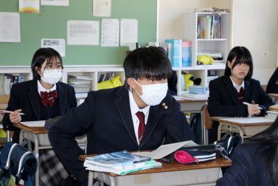 中学3年生は来年度、「物理」か「生物」の選択をします。その選択のために、物理担当の田中先生、生物担当の太田より説明をしました。まずは医学部、薬学部、工学部、文学部、法学部など学部や理系、文系の説明をしました。そして過去の合格した先輩たちの選択を参考にしながら、自分の希望進路にあう選択を考えました。