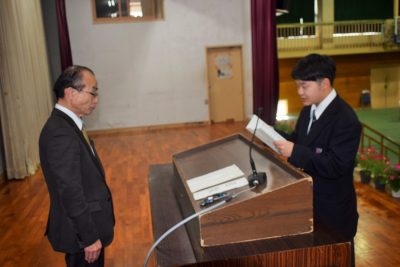 表彰式並びに記念品贈呈受領式、同窓会入会式実施