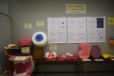 本年度の文化の部理科展示では、高等部5年生が「ヒトの臓器の巨大模型」の作製をしました。それぞれが作りたい臓器を選び、大きく、大きくを目標に作りました。ダンボールや模造紙、ご提供いただいた漁業用のブイ(浮き)を駆使し作成しました。
