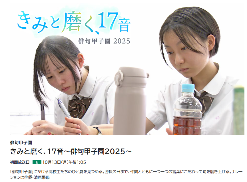 10/13(月)午後1:05~1:50 NHK「きみと磨く、17音〜俳句甲子園2025」に出演します。