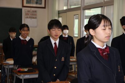 中学1年 「尚学館誓詞の唱和」~朝から清らかな心作り~