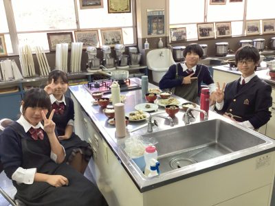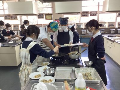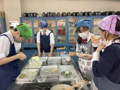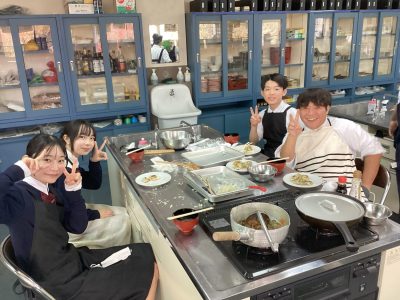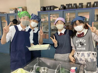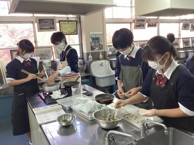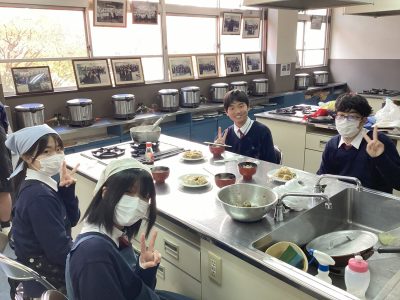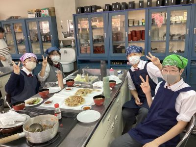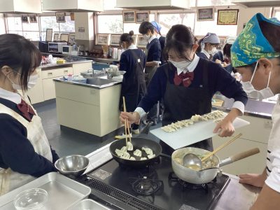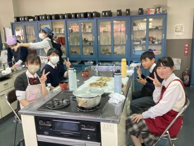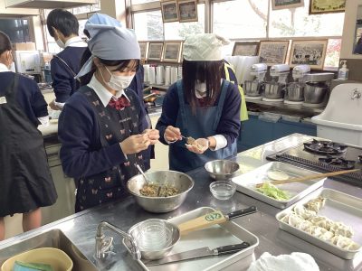 中学2年生2組は調理実習を行いました。餃子と豚汁を作りました。豚汁は具だくさんでおなかいっぱいになりました。 生徒の感想です。「初めて一から餃子を作りました。 餃子の皮を2枚使ってシュウマイを作ってみたり。余った具でハンバーグを作ったりしました。焼き加減は完璧で意外と美味しくできました。 お家でも作ってみたいと思います。」