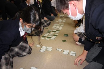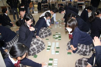 中学1・2年 LHR 「2年生に挑戦状をたたきつける」~百人一首で勝負~