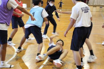 2学期終盤のLHRで中学1年生は学年レクリエーションをしました。「自分たちで内容は決めていいよ」と任せたところ、男子は8対7のバスケットボール。どう見ても多い、多すぎる。女子は前半はダンスの練習。君たちはどこまで踊るのが好きなんだ。そして後半はドッジボールでした。仲の良い35期生です。