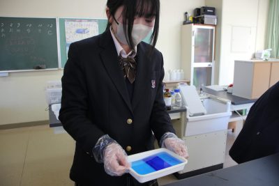 高等部5年 理系生物 「DNAの実験③」 ~ゲル染色と結果確認~