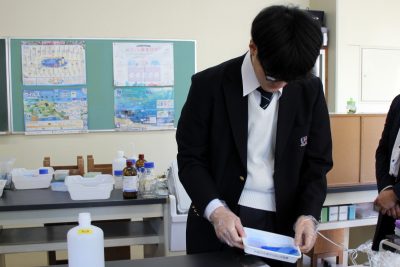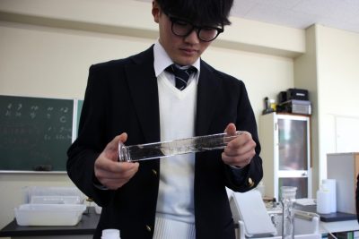この実験が理系生物の最後の実験です。中学3年のオオカナダモの顕微鏡観察から始まり、今まで30種を超える実験や観察をやりました。どれか一つでも心に残り、彼らの世界を広げることができていたら嬉しいと思います。