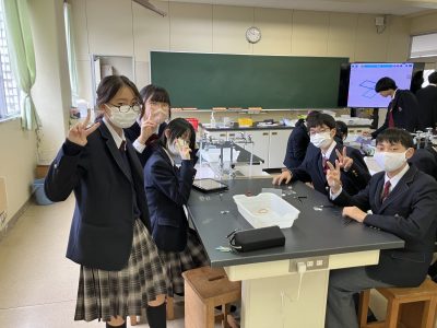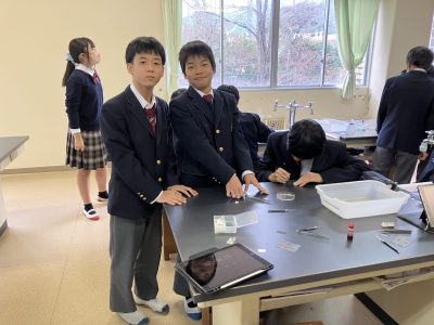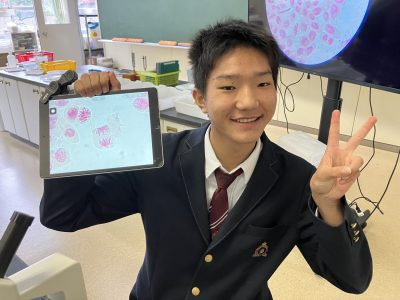 中学2年生では「生物のふえ方と成長」について学びました。生物室冷蔵庫に発根したタマネギの種が固定液で固定されているではありませんか!太田先生ありがとうございます!!ということで、さっそく体細胞分裂の顕微鏡観察をしました。とても難しい実験なので心配していましたが、説明をよく聞き、丁寧に押しつぶしたおかげか、多くの生徒が自力でにょろにょろした染色体を見つけることができました。分裂期のどの時期の細胞なのかまで、わかるようにもなりました。太田先生の技術のおかげで、百発百中成功できるようになったので、今度は、種まき発根からの酢締めの固定まで、私ができるようになるといいなあ。