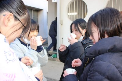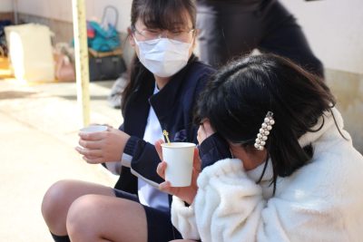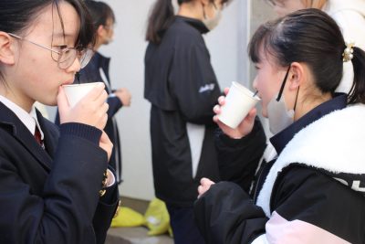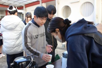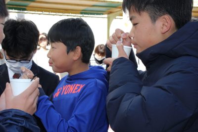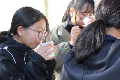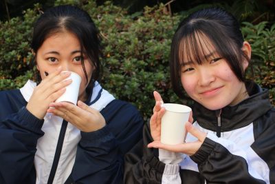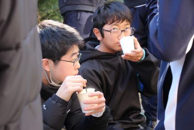 この百人一首大会の休憩時間には後援会の保護者様がホットドリンクを準備してくれました。ココア、コーンポタージュ、レモネード、コンソメスープ、これでもかというぐらいに熱せられたお湯で作られたドリンクでしたので、口の中も心も温まりました。一人2杯まで、という決まりでしたが、ちゃんと守られたのでしょうか。いや、15分であの熱さのものを2杯以上飲むのは無理だったでしょう。