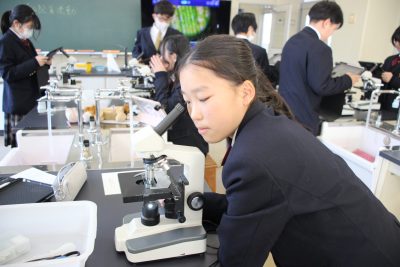 中学1年 理科Ⅱ 「オオカナダモの顕微鏡観察」~葉緑体はマーブルチョコ~