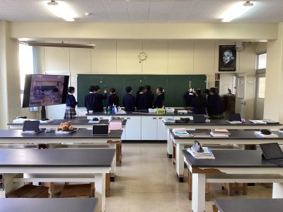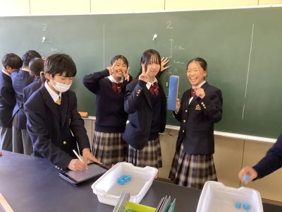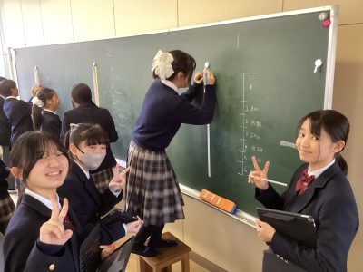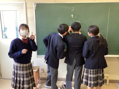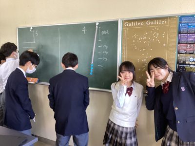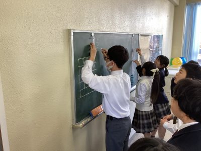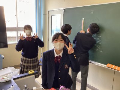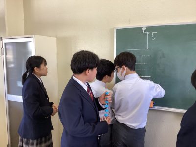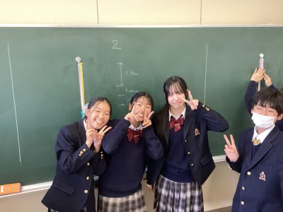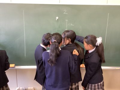 中学1年では「力による現象」を学習しています。ばねにはたらく力の大きさとばねの伸びとの関係を測定実験によって調べてみました。伸びとは?目盛りの読み方は?チョークの線太い…など失敗をくり返し改善しながら進めました。また、誤差を小さくするためにどうすればよいのを考えながら協力して行いました。時間いっぱい測定する姿に感心します。令和のフックさんは誕生するでしょうか。