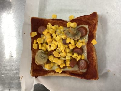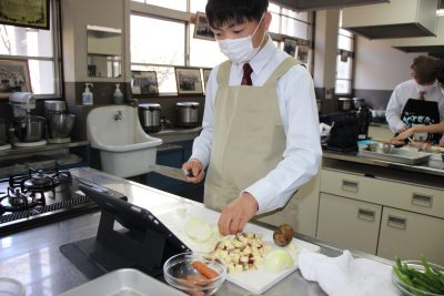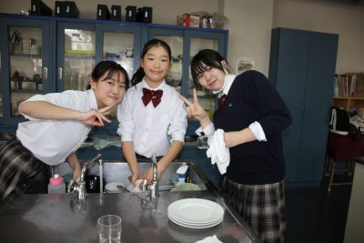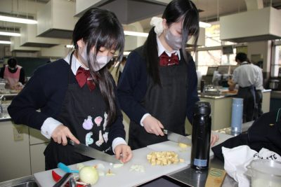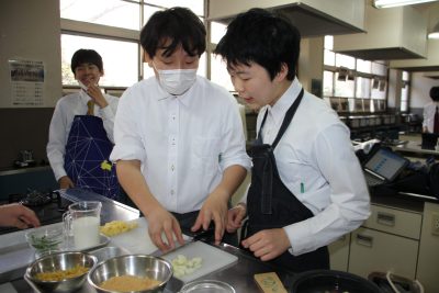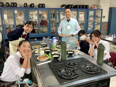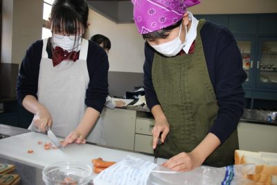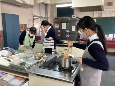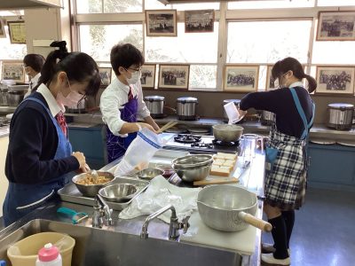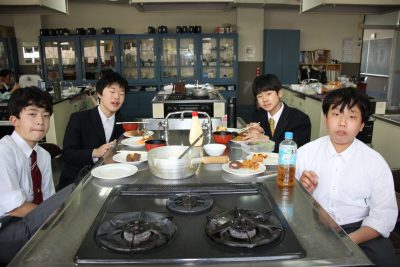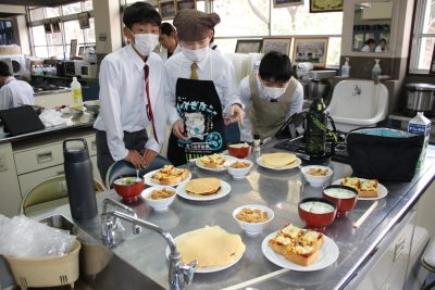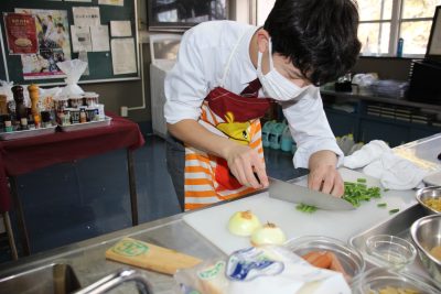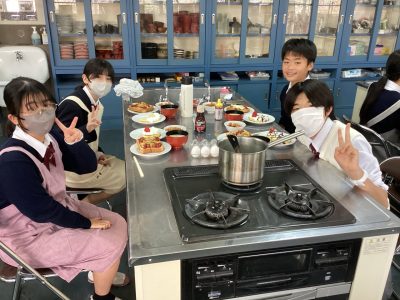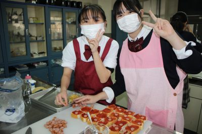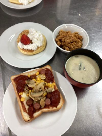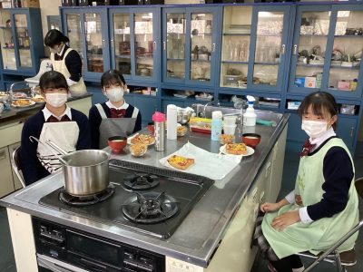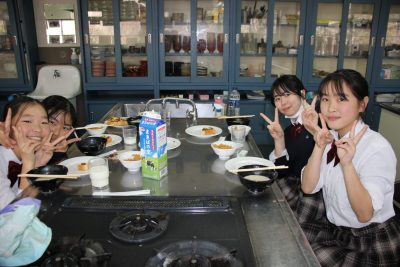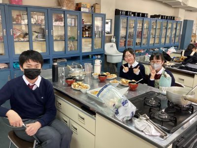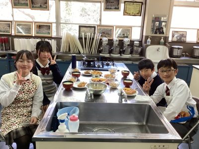 中学1年生の調理実習のお題は「野菜スープ」「ピザパン」「きなこマカロニ」の3品でした。タブレットを見ながら作っているのが、今どきだなぁ、と思いました。3品クリアできたらもう一品を自由に作って良いそうで、色んなデザートが追加されていました。私は「ミッキースタイルのどら焼き」をいただき、耳から食べました。その日の7時間目は理科でしたが、みんな食べすぎだったのか、ボーっとしてあくび連発でした。よほど血糖値が上がっていたのでしょう。ごちそうさまでした。