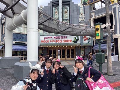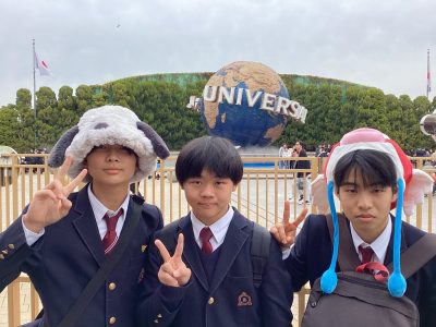 修学旅行最終日。思い出作りの最後はUSJでした。入念に計画を立てていたので、思い残すことのない6時間になったようでした。カチューシャを付け、多くのアトラクションに触れ、お土産も沢山買って大満足そうでした。4日間の修学旅行は内容はもちろん最高のものでしたが、体調不良者が1人も出なかったことが素晴らしく、その点を最も評価したいと思います。この修学旅行実施にあたり、日本旅行の工藤さんをはじめ、関係した全ての方に感謝申し上げたいと思います。本当にありがとうございました。