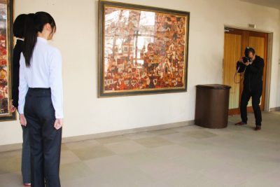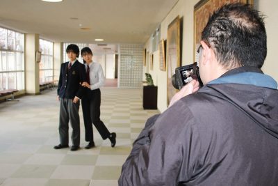 尚学館のかっこいい制服に、新たに女子のスラックスが加わります。その紹介画像を内倉写真館の秋山義行氏に撮ってもらいました。モデルは3年生のダンス部のみなさんです。撮影を後ろから撮影していたのですが、やはりダンス部、ポージングがとても上手でした。完成写真は②に掲載します。