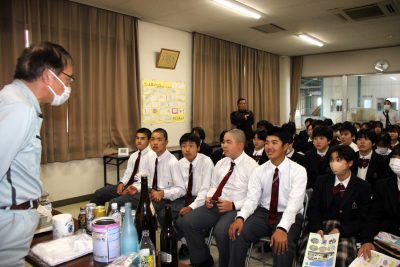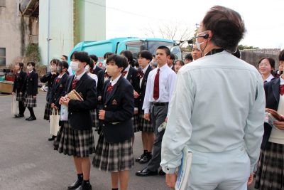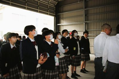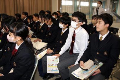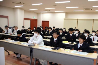 2/25に中学1年生全員で「延岡市清掃工場」と「ゲン丸館」に見学に行きました。清掃工場は最近まで稼働していなかったらしくゴミピットに膨大なゴミがあり、ゴミがクレーンで持ち上げられ、落とされるのがとても見ごたえがありました。ゲン丸館ではリサイクルについての講義を聞き、実際に不燃物が分別される様子を見ました。最後に1組の村瀨柑奈さんが「今日は私たちのために、清掃工場のことやリサイクルのことを詳しく教えていただき、ありがとうございます。今日の見学を通して、リサイクルや分別の大切さを改めて知ることが出来ました。今日は本当にありがとうございました!」とお礼と感想を述べました。
