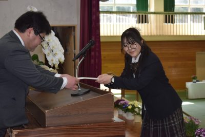 表彰式並びに記念品贈呈受領式、同窓会入会式 ~6年間皆勤すげー!~